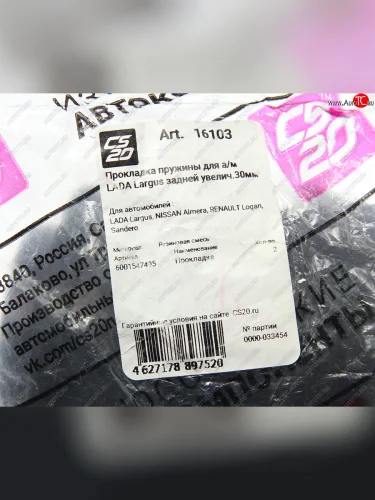 Прокладка ЛАДА Vesta, Largus,X-Ray RENAULT Logan пружины задней верхняя (лифт +30) комплект CS-20 CS-20 16103 в Новочеркасске Ростовской области